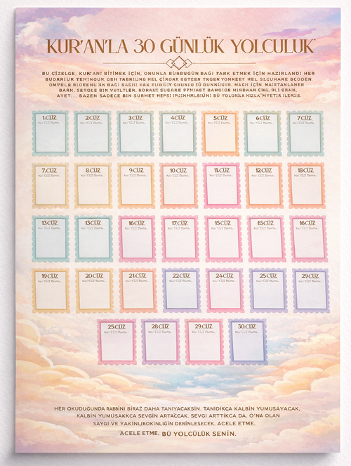 Kur'an'la 30 Günlük Yolculuk Çizelgesi(HEDİYE)