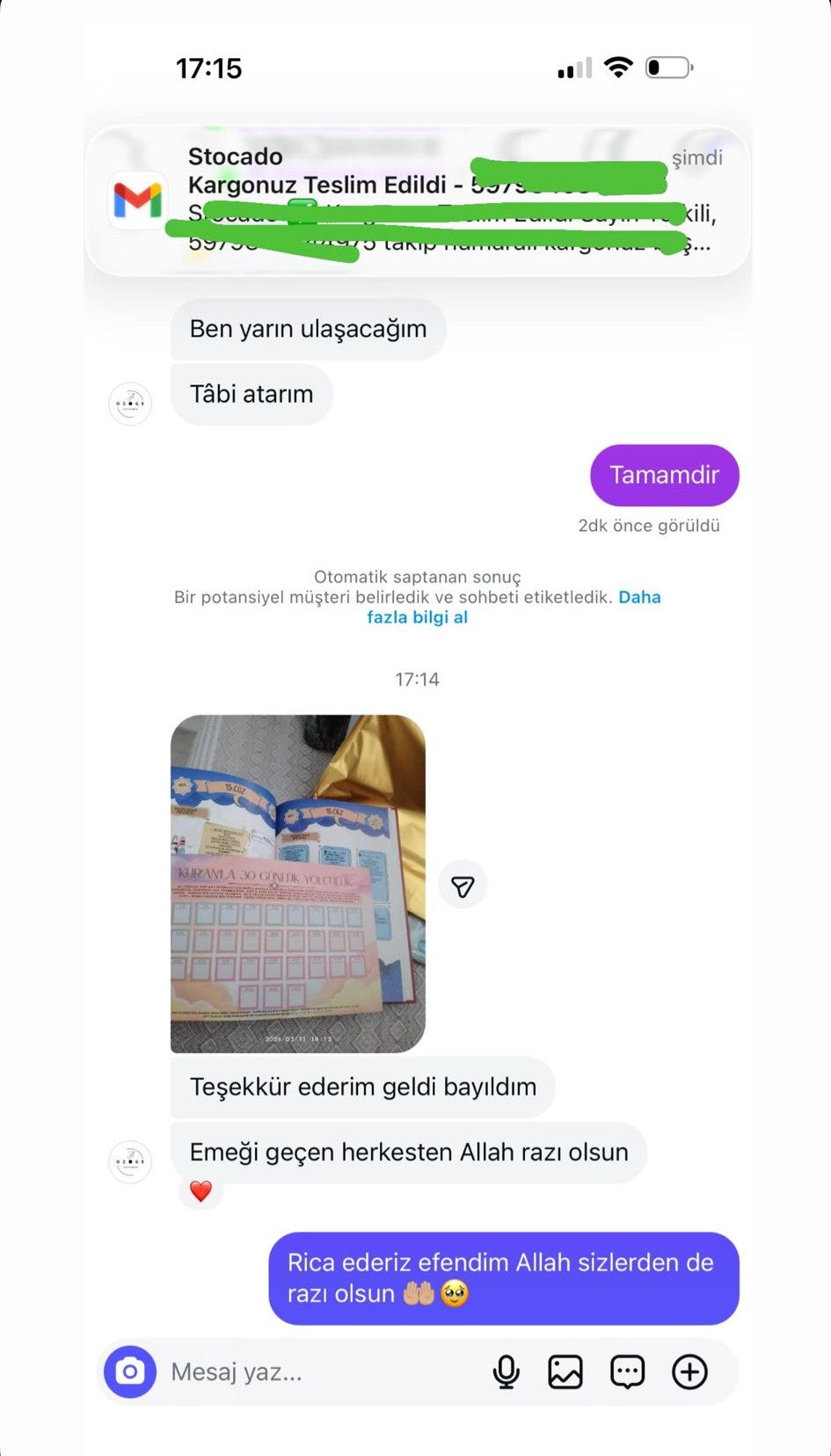 Siparişiniz 3 iş günü içinde özenle hazırlanarak kargoya verilir.