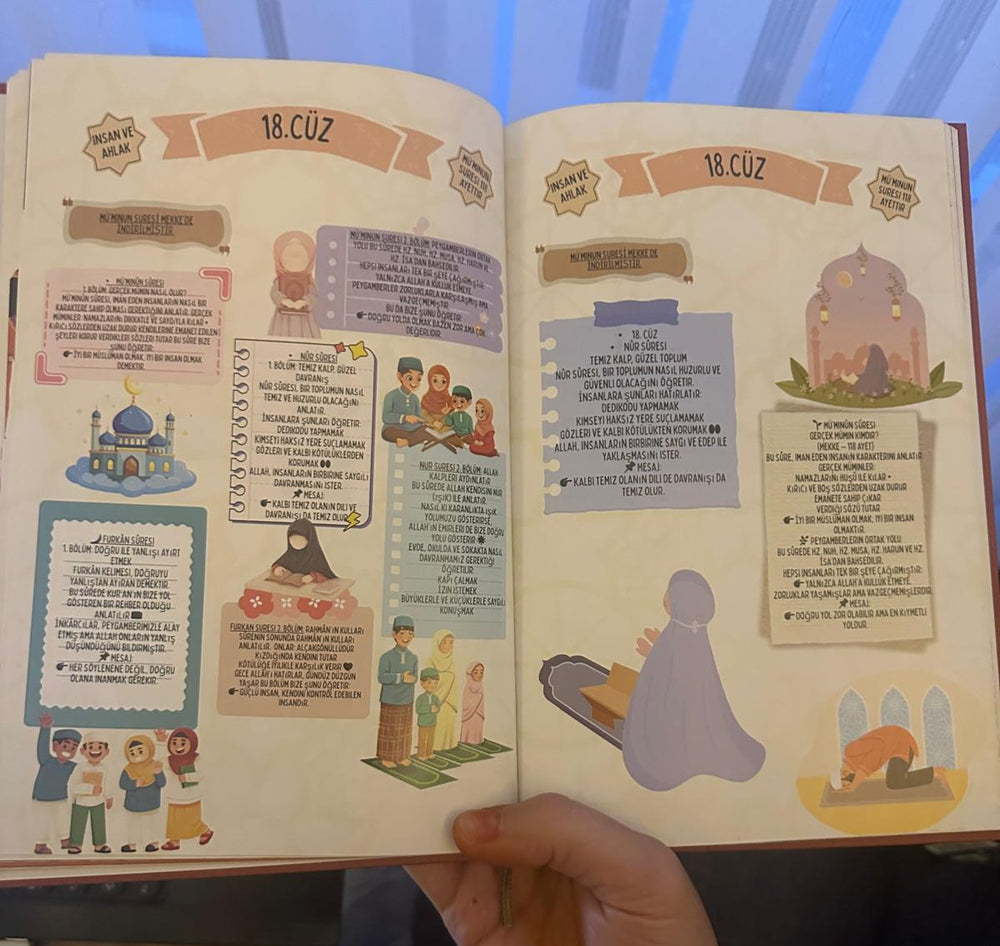 Bu rehber, Kur’an’la kurulan bağı adım adım, sade anlatım ve açıklayıcı görsellerle güçlendirir.Karmaşık ifadeler yerine anlaşılır bir dil sunar;
